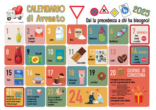 Ad ogni casella - corrispondente ad un giorno preciso del cammino di Avvento - è citato un prodotto o un impegno da aggiungere nella borsa della spesa. I bambini sono invitati a cercarlo in casa